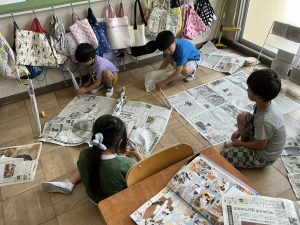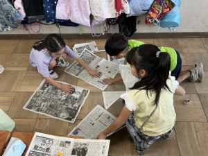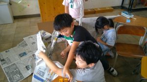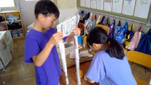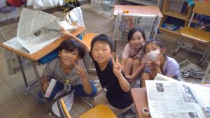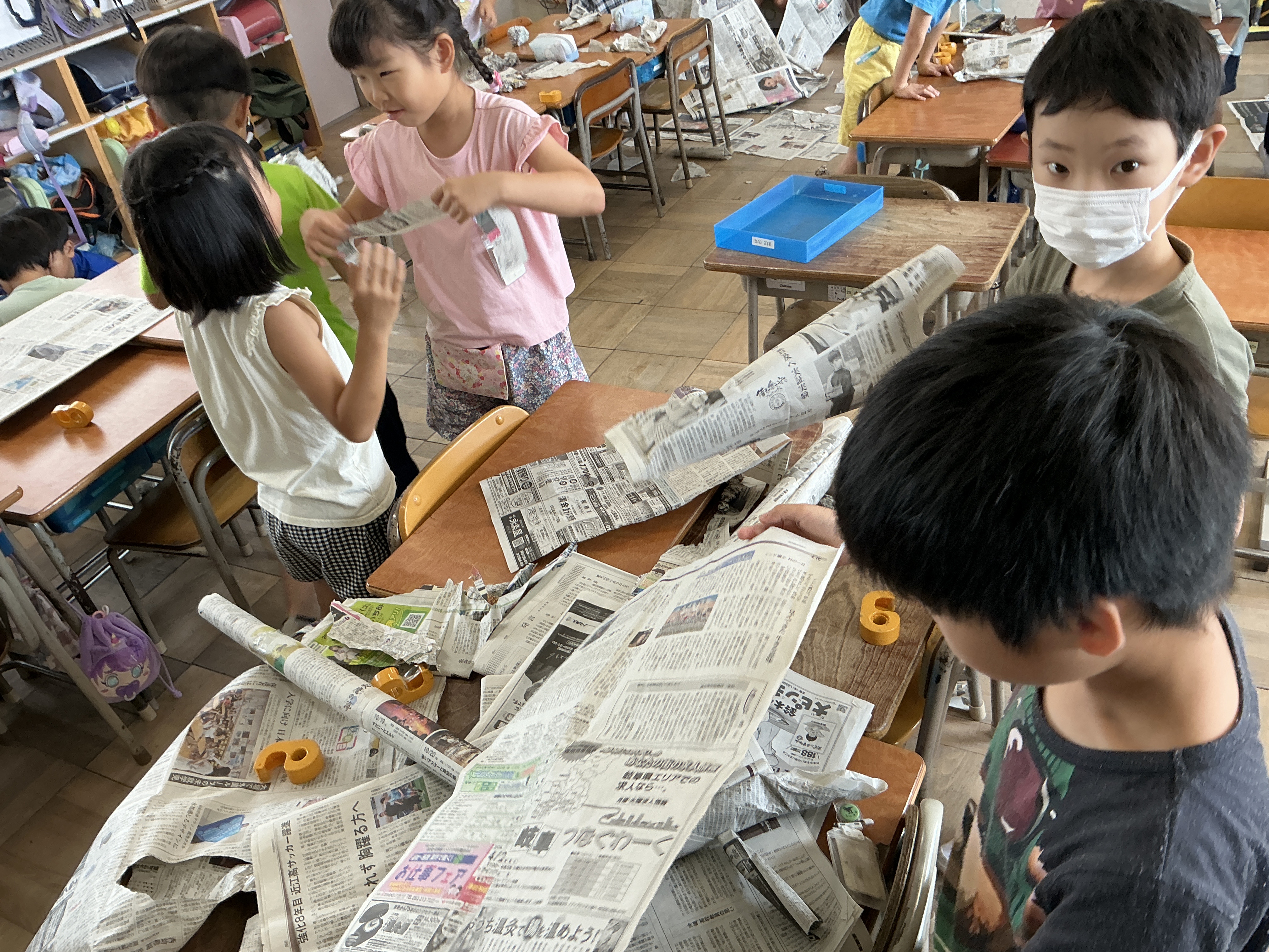 6月26日,27日の図工科の時間に「しんぶんしでなかよし」を行いました。新聞紙を丸めたり、破いたりして、各グループで相談しながら作品を仕上げました。仲間と協力して、作り上げており、どの児童も輝いていました。次回行う「くしゃくしゃぎゅ」も、楽しみです。