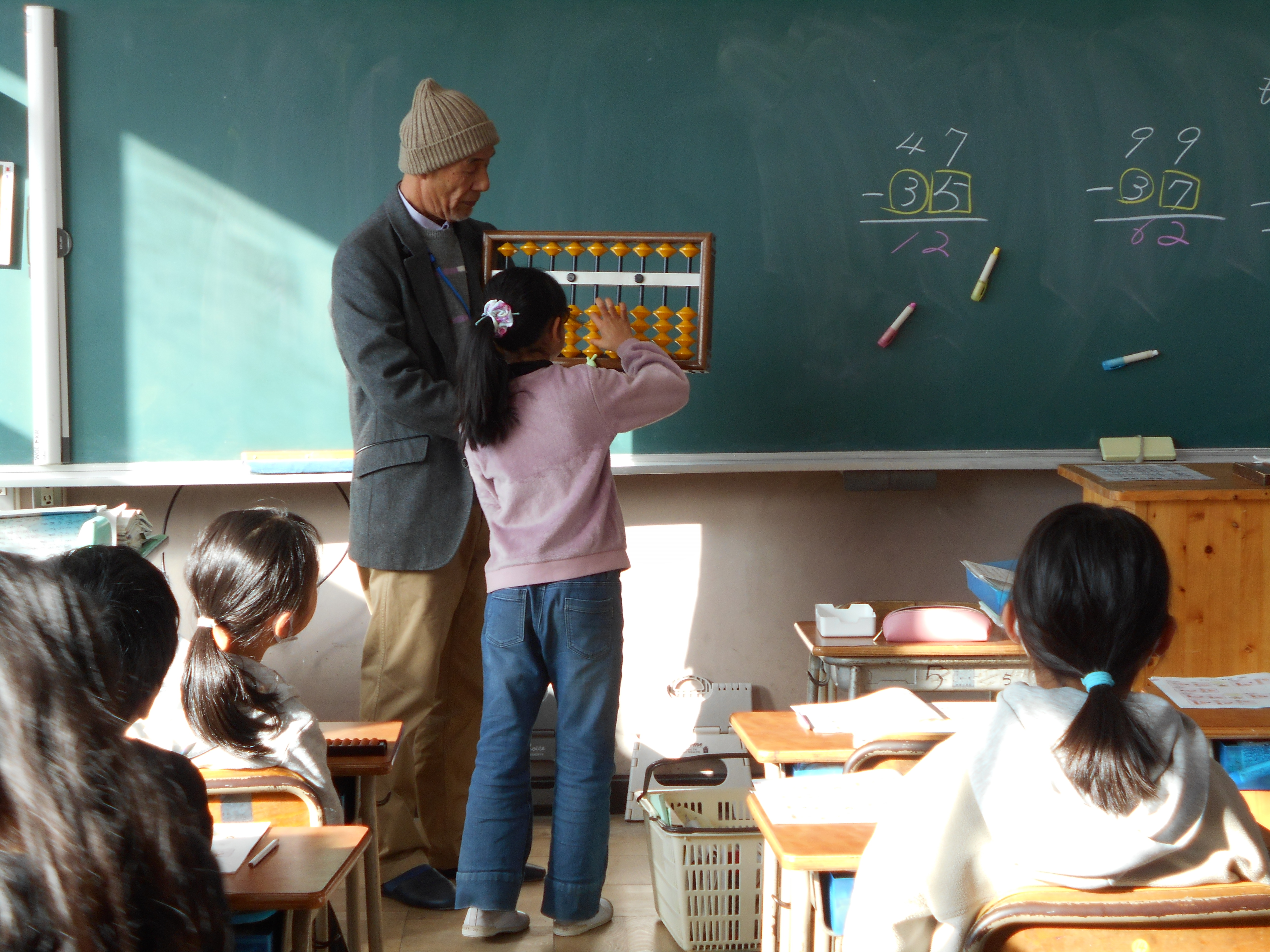 3年生先週の20日と22日に、講師の先生をお招きして「そろばん教室」がありました。